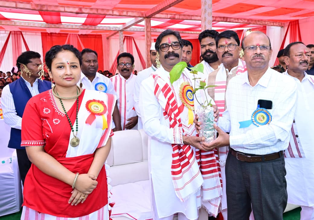कार्यक्रम के दौरान मुख्यमंत्री ने मांदर बजाकर लोगों का उत्साह और बढ़ा दिया। इस दौरान लोग पारंपरिक अंदाज में झूमते नजर आए और सरहुल का जश्न पूरे जोश के साथ मनाया गया।